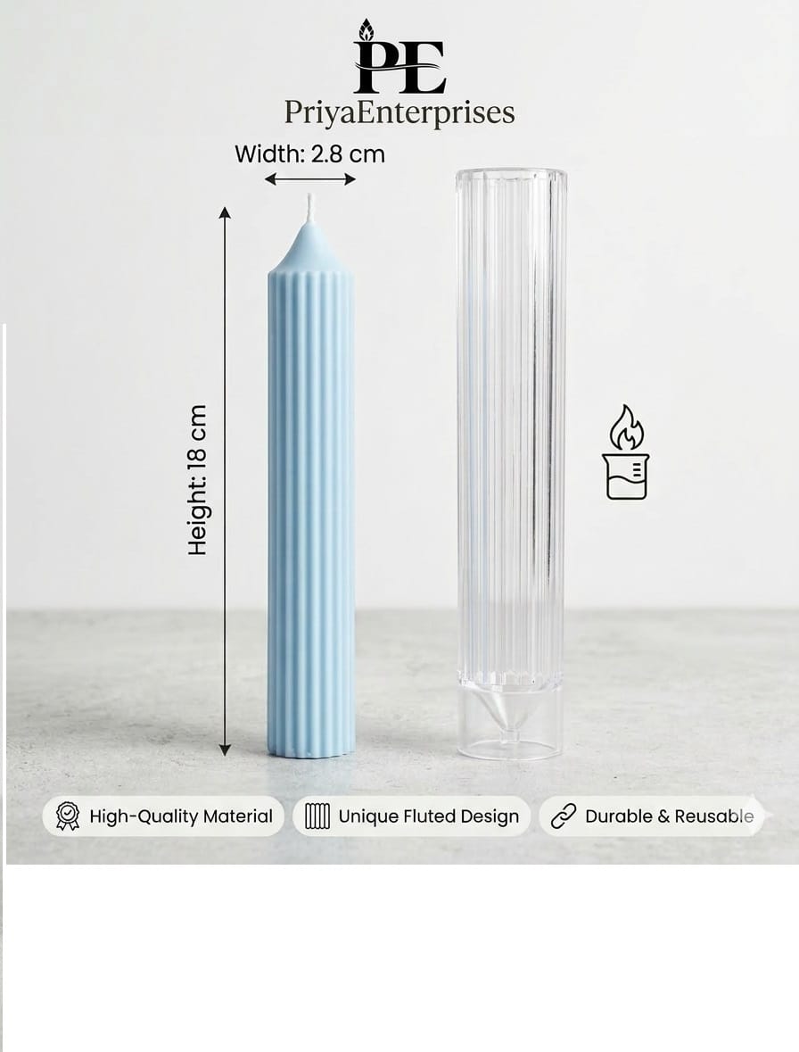 Elevate your candle-making business with the Priya Enterprises Premium Ribbed Polycarbonate Mould. Designed for creators who demand both style and durability, this mould produces elegant, fluted pillar candles that add a touch of modern sophistication to any space.