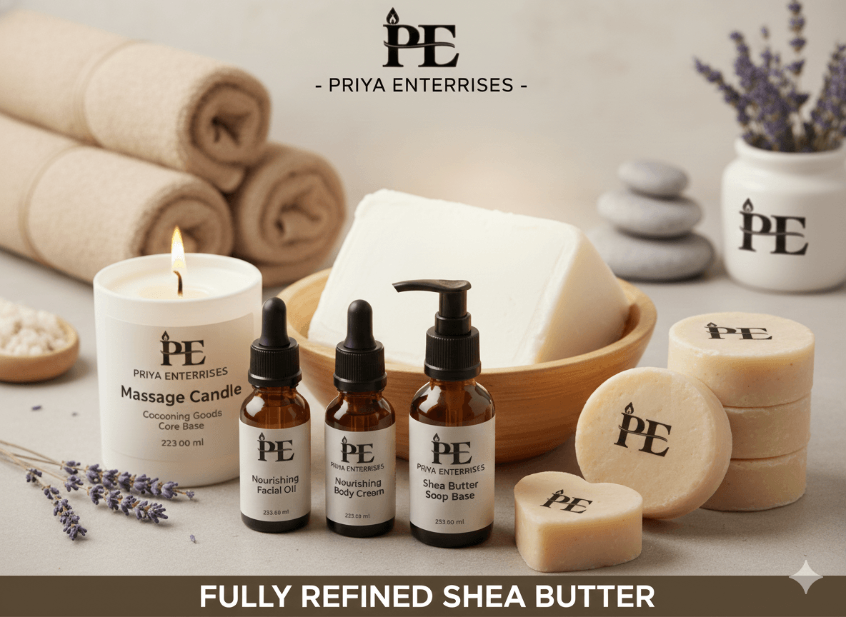 At Priya Enterprises, we believe that the foundation of exceptional personal care starts with the purest ingredients. Our Fully Refined Shea Butter is a premium, multi-purpose powerhouse, meticulously processed to remove impurities and odors while retaining its deep moisturizing properties.